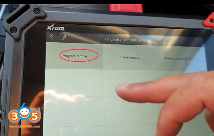 Select Immobilizer function->VW->Program remote->Turn on ignition switch-> 09 Central control (CAN BUS)->Program remote->Type 2